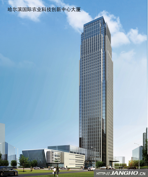 哈爾濱國際農業科技創新中心大廈位于哈爾濱市松北區科技創新城,建成后將成為黑龍江省省會城市哈爾濱第一高樓。項目建筑總高度達到200米,將成為哈爾濱市獨具特色的地標性建筑。項目建筑面積120000平方米,幕墻面積55299平方米。工程建筑設計莊重、大方、剛正挺拔,猶如擎天立柱,拔地而起,直入云霄,象征著哈爾濱市繁榮興旺。